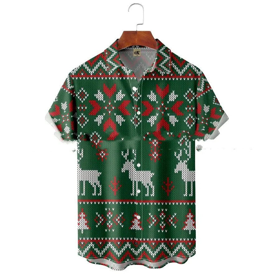 Men's Lapel Basic Holiday Printed Short-sleeved Shirt